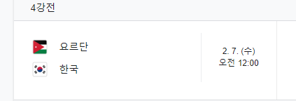 4강전의 상대는 요르단입니다. 슬슬 몰입도가 올라가는 선수들이기 때문에, 조별리그보다 좋은 결과를 내어줄 수 있을거라 생각합니다.