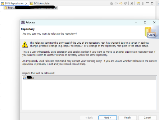 이클립스 svn 주소 변경하기 (eclipse svn adress change)